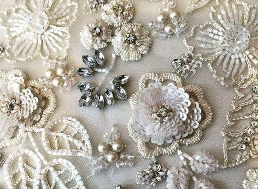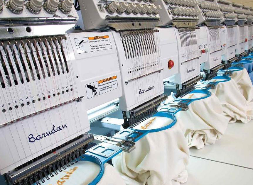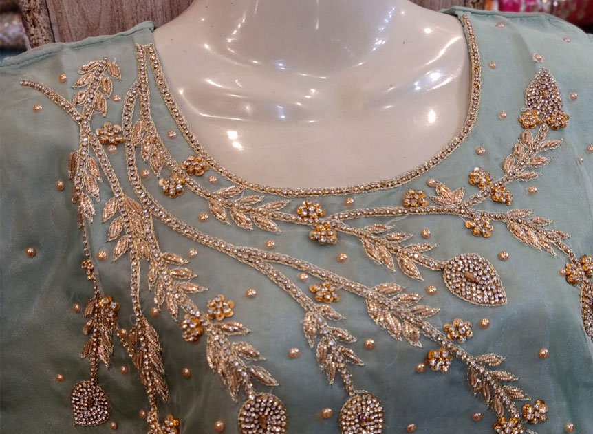 Computerised multi head embroidery machines to make chain, loop stitch and chenneli designs up to 8-9 colors on Japanese make Barudan machine.Hand embroidery designs with sequence work, beads…Stone fixing, rhime stones, heat transfer photo & flock prints.