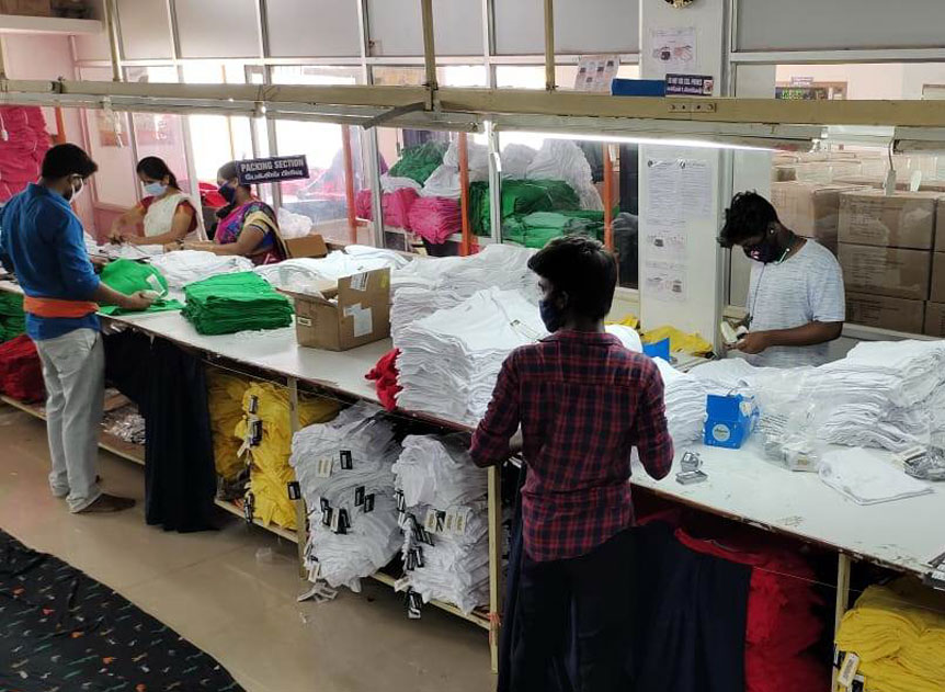 Garmenting of fabrics, is where a design takes shape into reality. It determines the precision and presentation of a garment, apart from quality. We having a capacity of 2,75,000 T-Shirts per month, on a polo scale. Be it mens, ladies or children we have the competence to garment any styles of your choice, in tune with the specifications